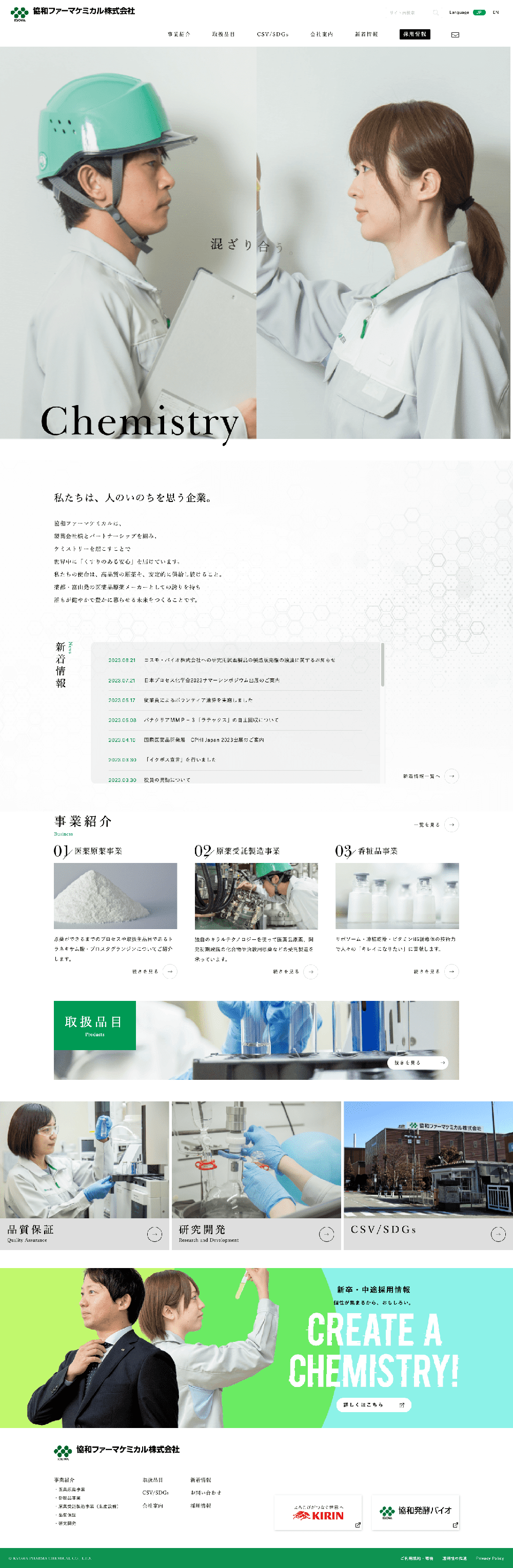 ~薬づくりの最高に頼れるパートナーへ~ 私たち協和ファーマケミカルは、有機合成技術を核とした薬づくりに誠実に取り組み、皆さまの期待を上回る提案によって、世界の人々の健康と笑顔を実現していきます。